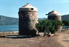 In Eloúnda machten wir eine Kaffeepause und etliche Fotos, bevor uns die Tour weiter nach Pláka führte. Um diese Jahreszeit ist das Fischerdorf aber mehr als verlassen. Ein paar Hunde und Katzen. Sonst war nicht viel vom Dorfleben erkennbar. Deshalb lohnte es sich auch nicht, hier länger Station zu machen. Wir fuhren hinter Pláka in die Berge. Immer wieder hielten wir an, um Fotos zu machen oder einfach die Aussicht und die Landschaft zu geniesen. In der Nähe von Vrouchás befinden sich die Überreste von ein paar Windmühlen und daneben eine kleine Kapelle. Wieder ein gutes Fotomotiv.