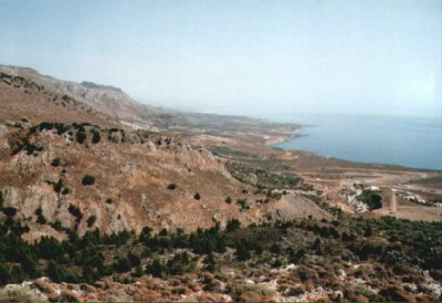 Hier einmal ein Eindruck von Kretas Südküste. Auf den Bergen in der Nähe von Chóra Sfakíon hat man diese Aussicht auf das libysche Meer. Irgendwo da unten befindet sich Frangokástello. |